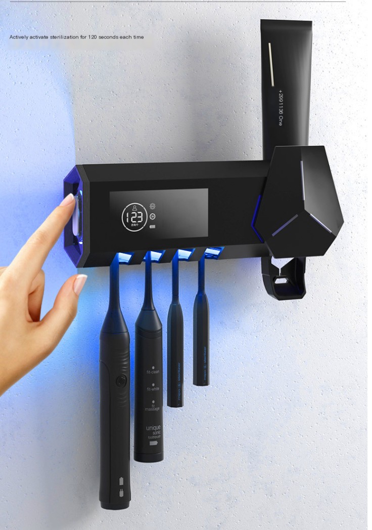 Suporte para escova de dentes UV inteligente - Esterilizador e Antibacteriano, espremedor automático de dispensador de pasta de dente